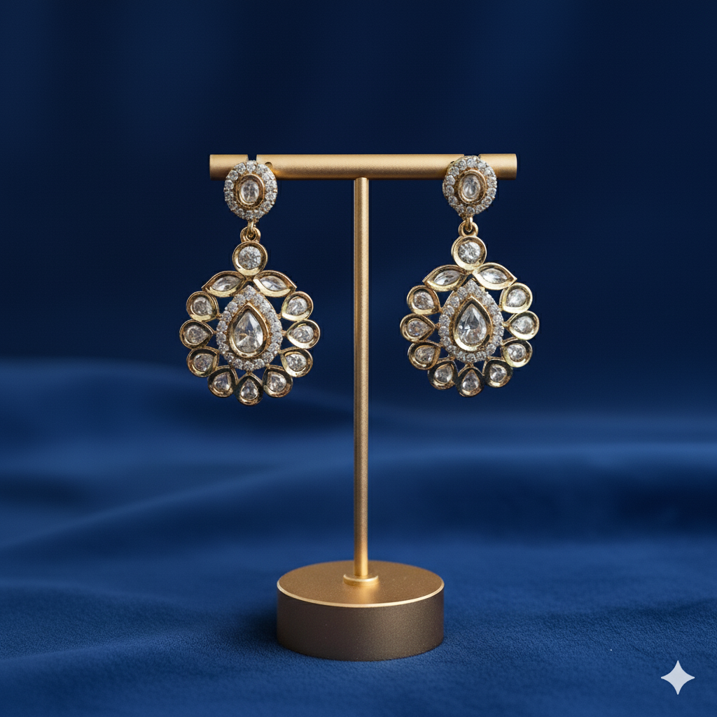Polki Drop Earrings with Multicoloured Bead Danglers