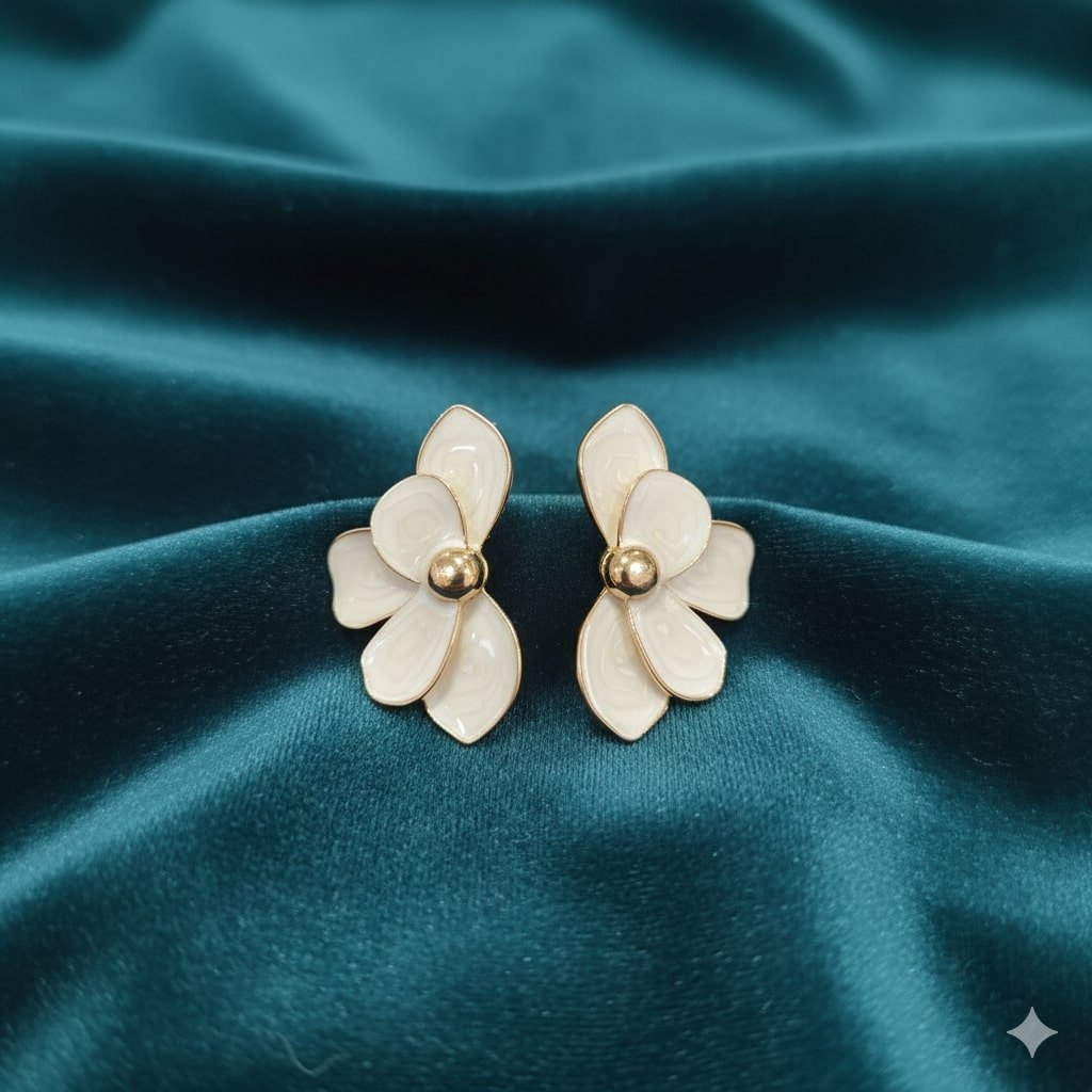 Hand-Embroidered Yellow and White Flower Stud Earrings