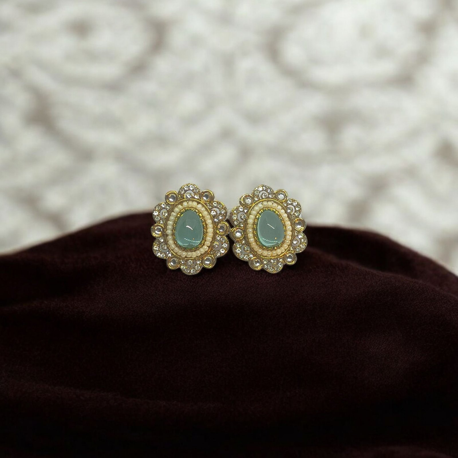 Red and Gold Cracked Stone Stud with Pearl Border